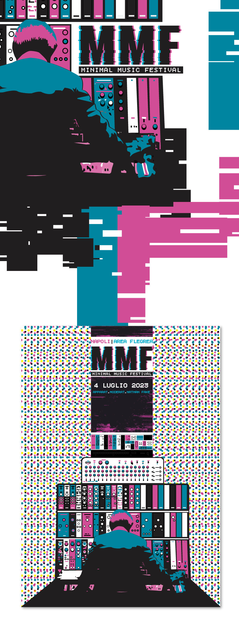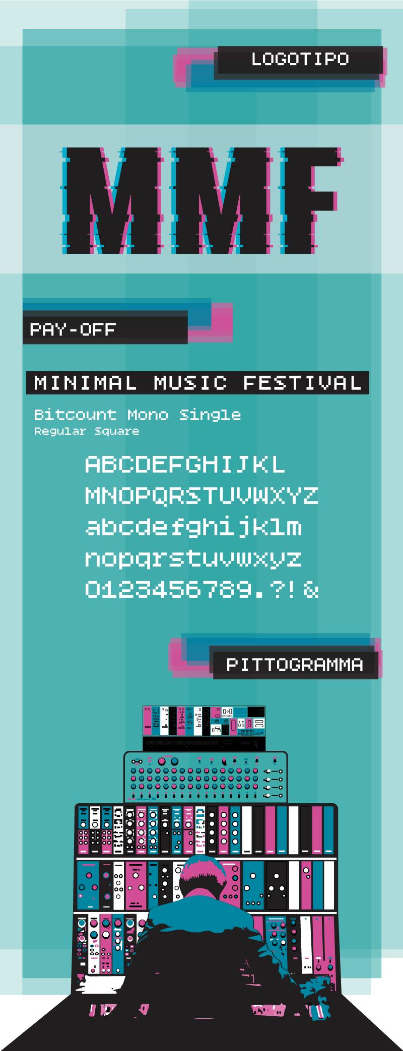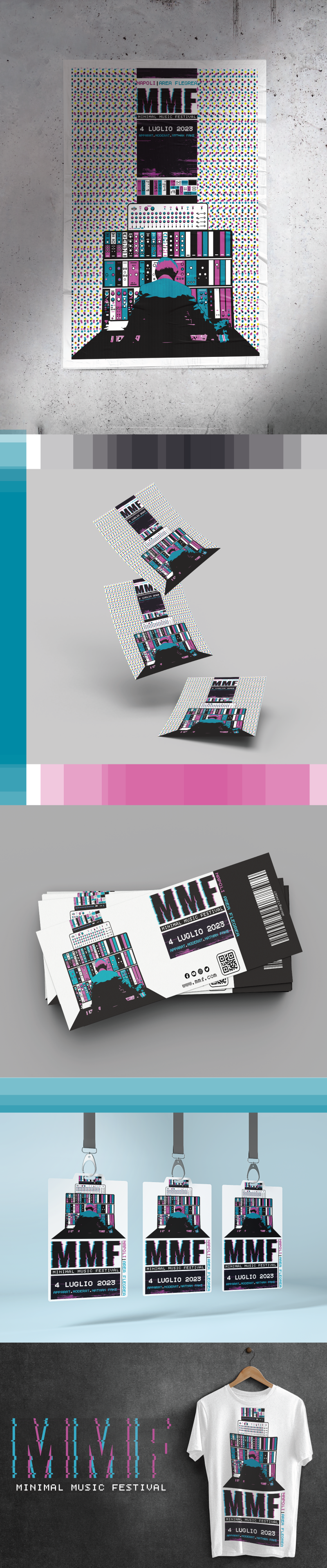 MMF (2022) Rebranding essenziale per un evento musicale: un linguaggio visivo diretto e modulare.